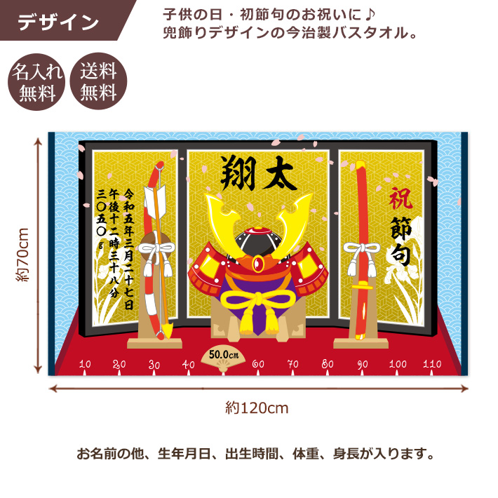 和風 兜飾り 今治製名入れバスタオル(約70cm×120cm) [to-kabuto]